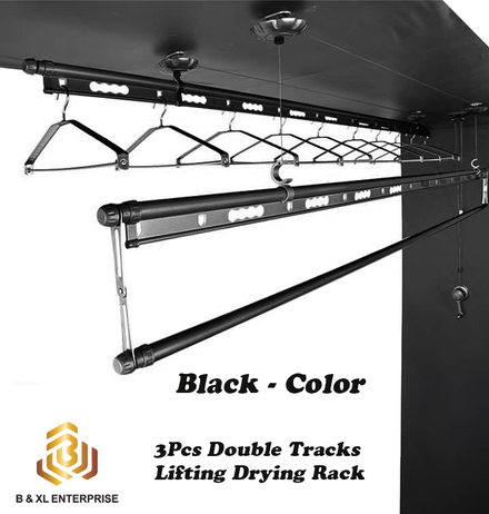 Black Colour 3Pcs Double Tracks Lifting Clothes Hanger